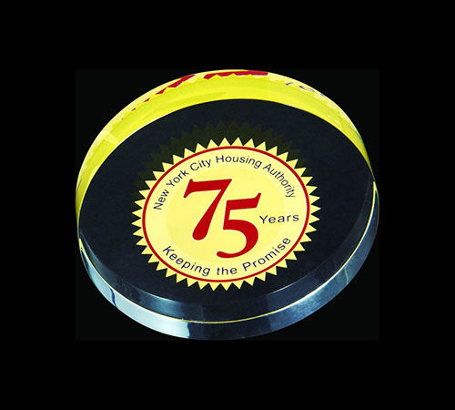 該產(chǎn)品是亞克力紀(jì)念品,在亞克力里面放一塊金屬片,在金屬上印上客人需要的文字和logo,多用于贈品或紀(jì)念品。