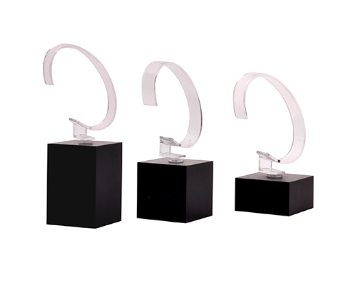 手表展示套裝的配件,手表展座,材質(zhì)為黑色亞克力,表面噴黑色磨砂油,展座上的透明表環(huán)需另購。此產(chǎn)品也可獨立存在,只需印上手表品牌logo就可。