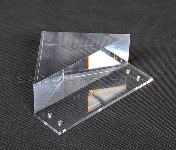 這款亞克力三角形家具腳是一個美國客戶定制的,由一塊50mm的板材加一塊5mm的板材粘接而成。板材加工切割采用高精度激光切割機(jī),保證切割面光滑通透,制作工藝包括切割、打孔、粘接等。